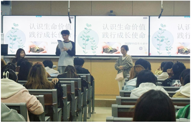 班会伊始,辅导员通过主题PPT课件,结合短视频展播、典型案例分享等形式,引导学生从“自我—他人—社会”三个层面深入思考生命的联结与责任。强化“尊重生命、热爱生活、担当责任、追求价值”的思想自觉与行动自觉,推动“时代新人铸魂工程”落地见效。