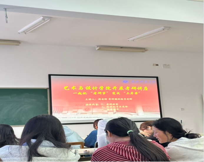 为帮助考研学子明晰备考方向、把握行业前景,进一步提升学院考研升学率,11 月 5 日下午艺术与设计学院于教一 402 教室举办考研指导专题讲座。本次讲座特邀经验丰富的考研规划指导师周老师主讲,为同学们带来全面、实用的备考干货分享。