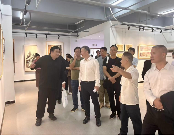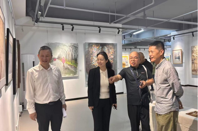 随后,与会人员移步展厅,共同观展。在展厅内,各高校教师代表分别对本校的参展作品进行了介绍与交流。作品涵盖国画、油画、版画、雕塑、陶艺、综合材料等多个门类,风格多样,技法精湛,充分展现了各校教师深厚的艺术功底与独特的教学思考,现场艺术交流氛围浓厚热烈。