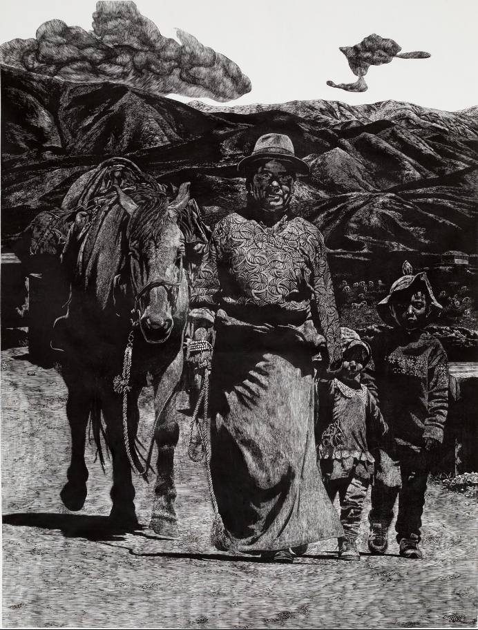 汉江师范学院 黄新霞 版画 《我们走在大路上》 160cm×120cm