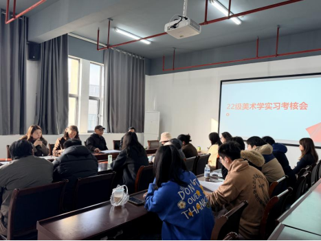 近日,艺术与设计学院在揽胜楼421室开展了2022级美术学专业分散实习生返校考核工作。院教学委员会成员、部分专业教师,全体分散实习学生参加考核。