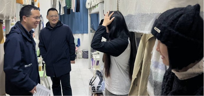 在走访检查过程中,学院领导仔细查看了寝室卫生状况,对走廊鞋架摆放等占用公共资源的现象进行了现场规范。对部分存在杂物堆放、卫生清理不到位的宿舍提出了整改建议,同时耐心向同学们讲解了使用违规电器的安全隐患,强调了维护公共区域文明的重要性。