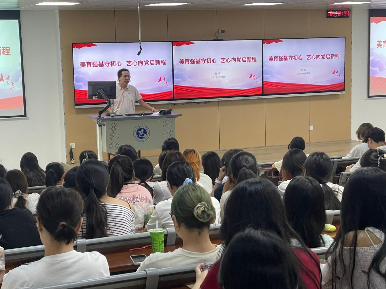 6月20日,学院党委书记王凡为 2025 届毕业生党员讲授 “最后一堂党课”,以 “艺心向党,扬帆远航 —— 在艺术人生新征程中永葆党员本色” 为题,为即将离校的学子送上临行嘱托。活动伊始,全体毕业生党员重温入党誓词,铿锵誓言彰显对党的忠诚与担当。