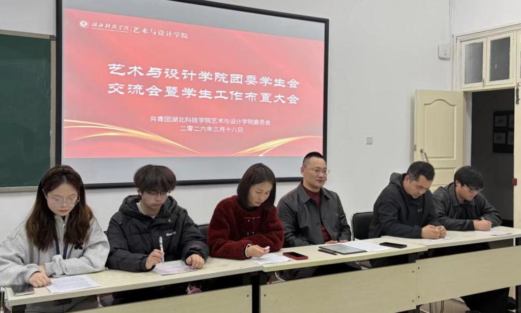 3月19日19:00,艺术与设计学院2026年春季团委学生会工作交流暨团学干部能力提升大会在教一402教室顺利召开。学院党委副书记齐铁军、学工办正科级辅导员 徐保祥、辅导员罗姣姣出席了本次会议,学院团委学生会主席团全体成员、各部门部长及干事共同参会,会议由徐保祥老师主持。